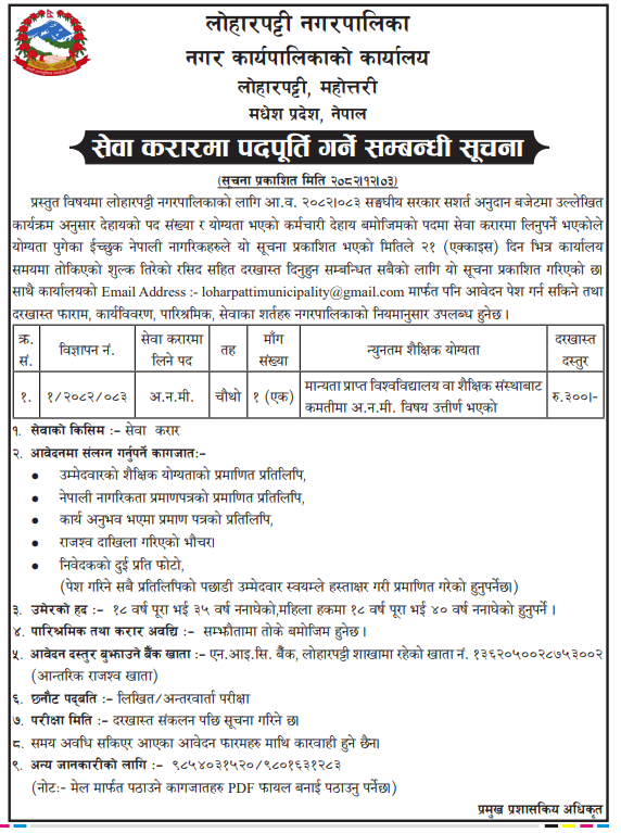 अ.न.मी. सेवा करार पदपूर्ति सम्वन्धमा